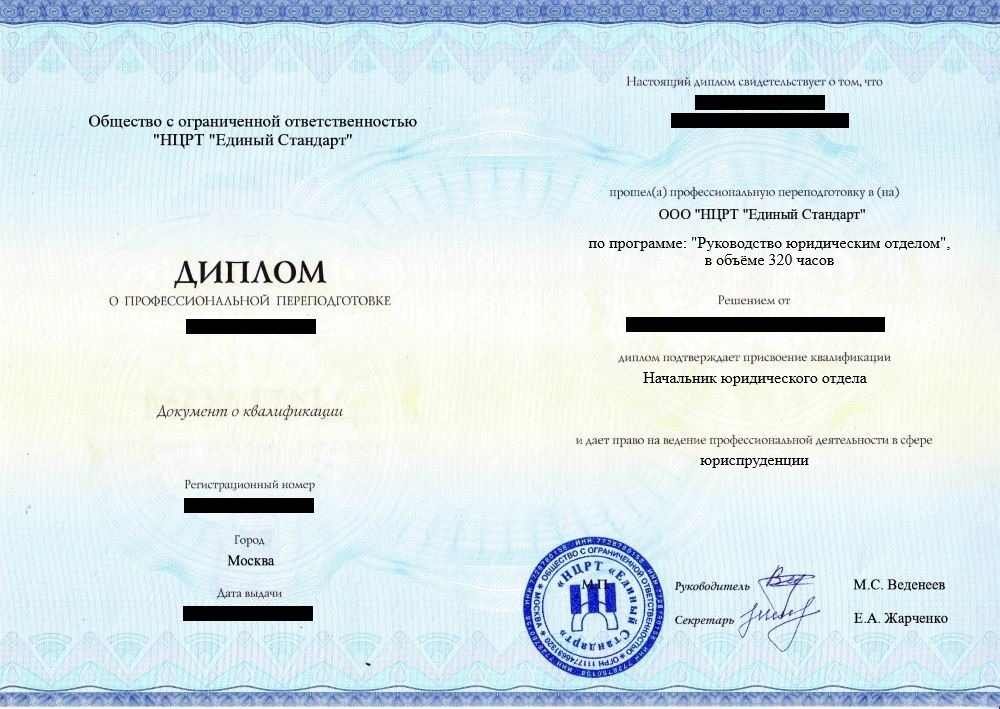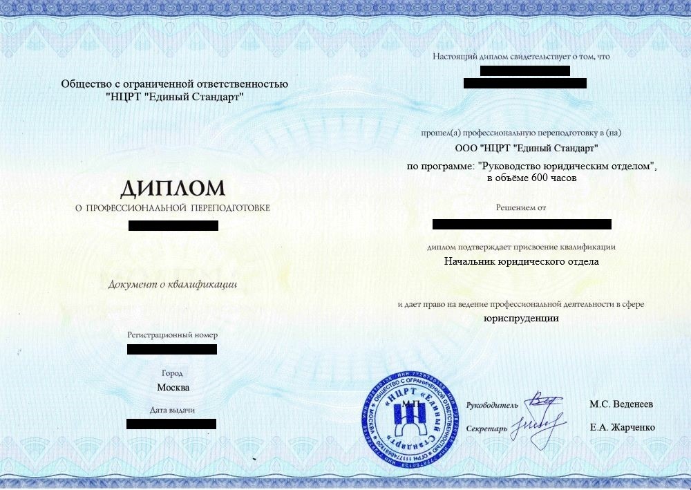 - Диплом о профессиональной переподготовке установленного образца